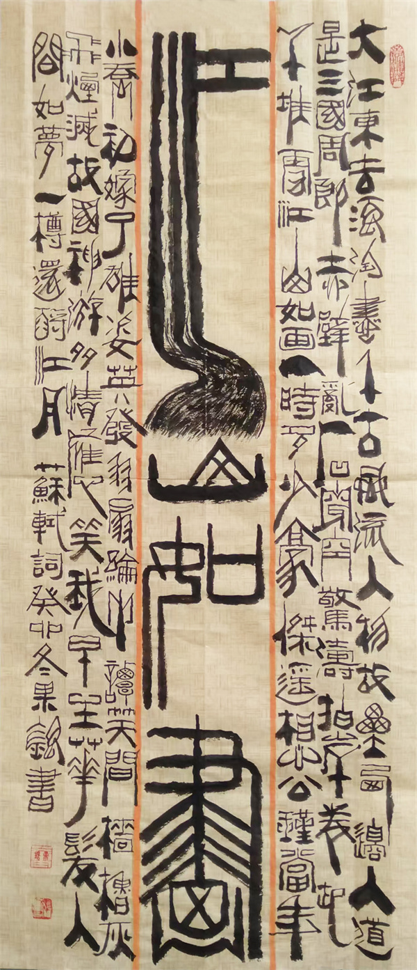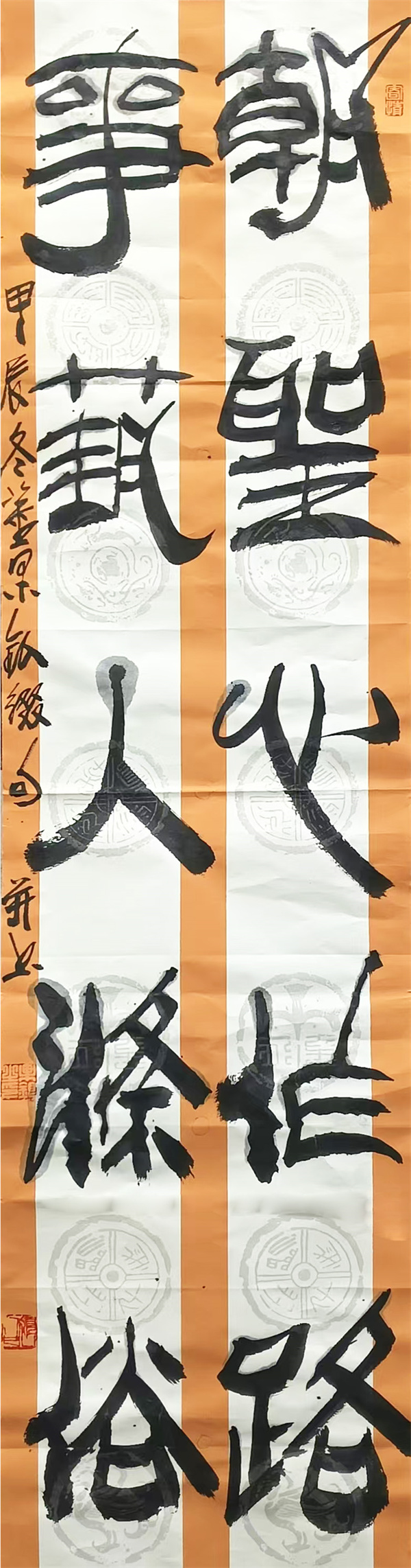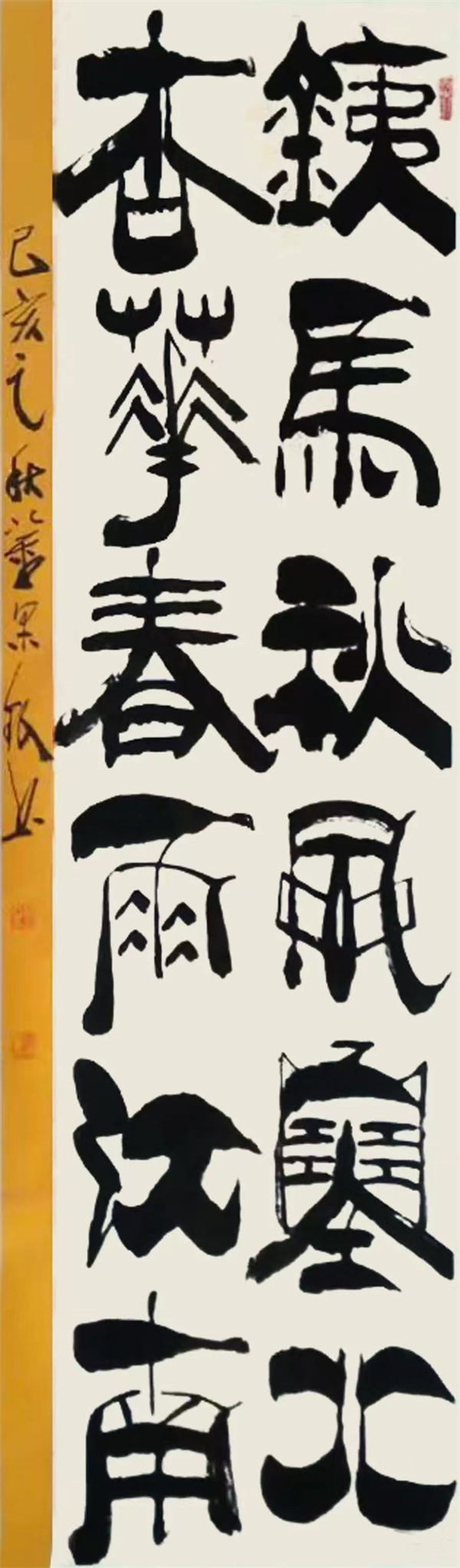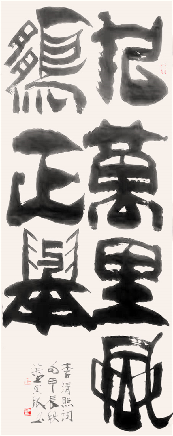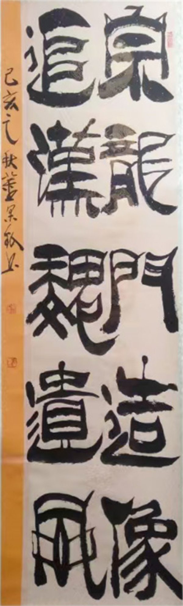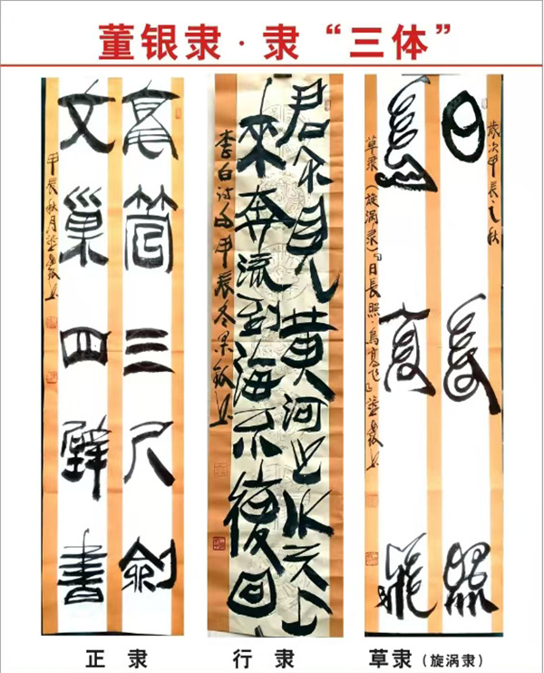 董果银的“隶写三体”,是一套完整的隶书创新体系。正隶立其基,行隶通其脉,草隶拓其境,三者互为支撑,共同构成了他独特的隶书艺术语言。他如一位执着的拓荒者,在西方人本主义、生命诗学与中国书学的交叉地带深耕,以“远离时风,耻与人同”的艺术态度,践行着“乘物以游心”的创作哲思。其作品先后在泰国、日本、加拿大等国展出,获奖众多,这既是国际艺术界对其探索的认可,也证明了传统书法在当代创变中所具有的强大生命力。