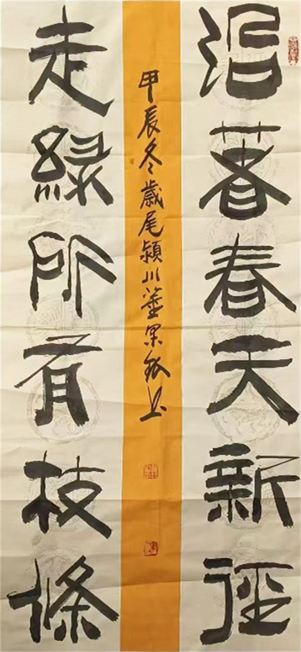 中国书法之美,在于“法古”与“变今”的辩证统一。东汉蔡邕《九势》言“夫书肇于自然,自然既立,阴阳生焉;阴阳既生,形势出矣”,强调书法源于自然、成于阴阳形势的艺术规律。当代书家董果银以“隶写三体”——正隶、行隶、草隶(漩涡隶)的独特探索,在隶书艺术的千年长河中,凿出了属于自己的拓荒之径,其笔下的隶法,是对传统的敬畏,更是对创新的无畏,于形、于神、于意,皆有可圈可点的艺术价值。
