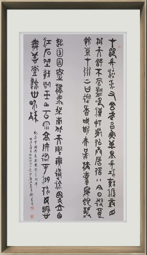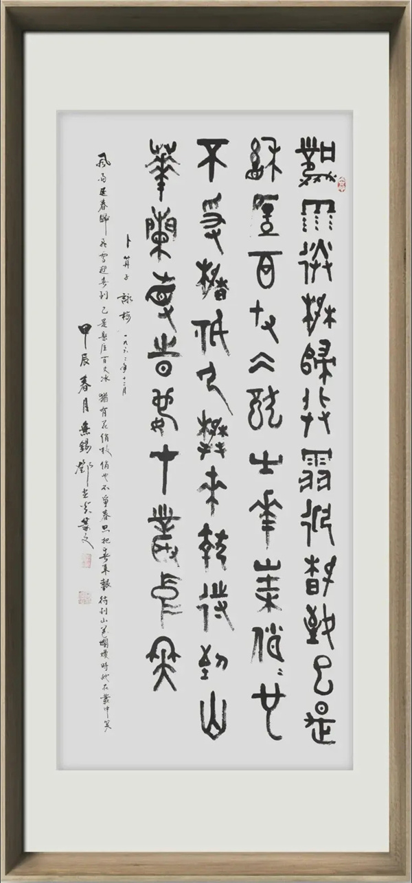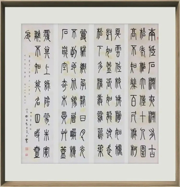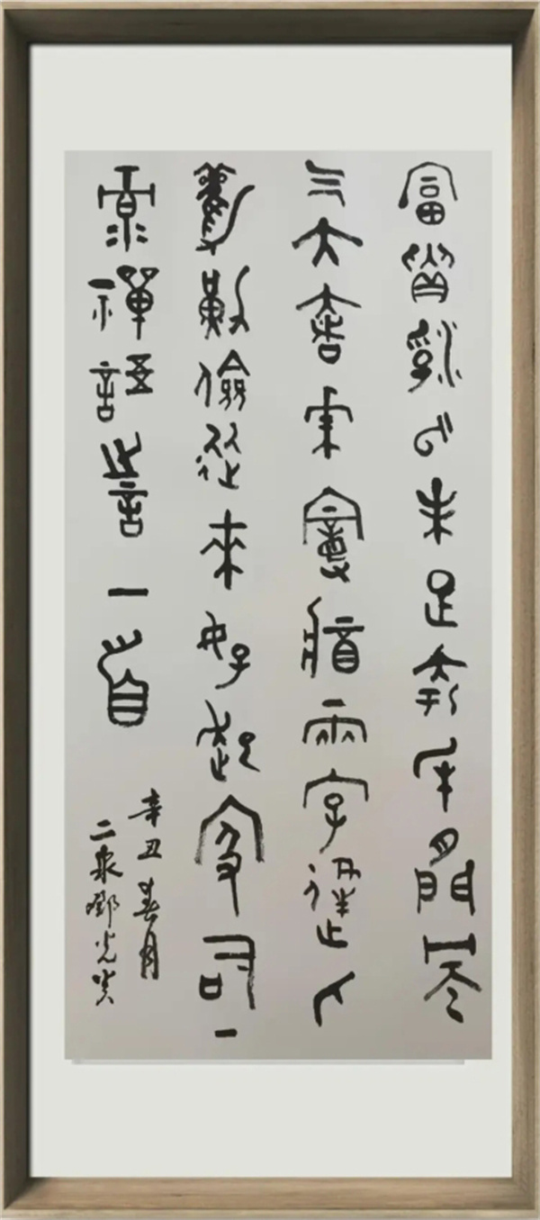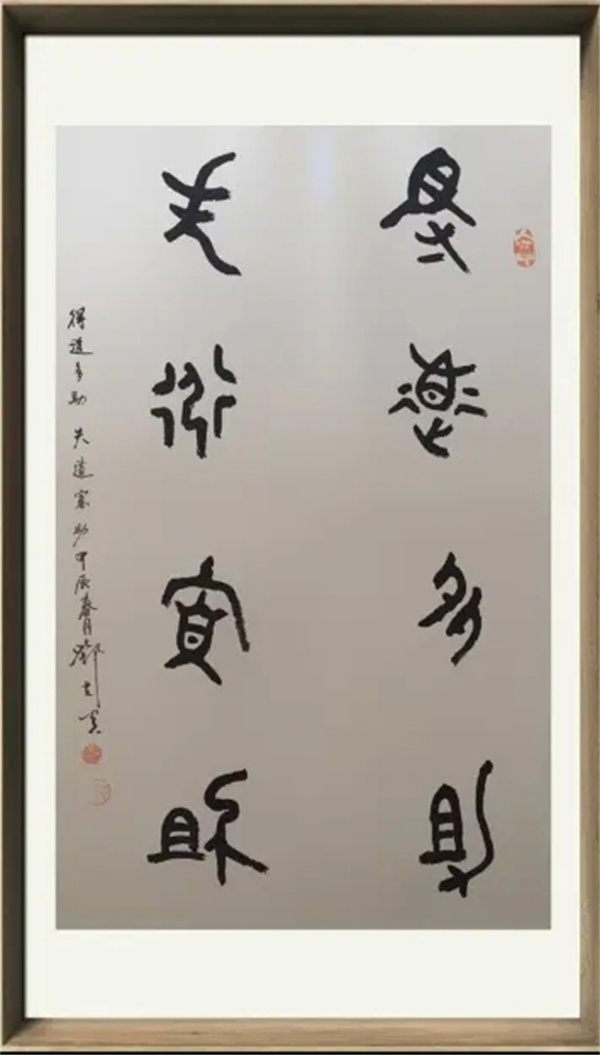 邓光炎自幼酷爱书法,博涉多体,其中最为出彩的是篆书。他研习历代篆书名家书风,形成了自己独特的艺术风格,充满了典雅与高古气息,章法疏阔均衡,整体气势魄力雄强,自由书写中不失规矩,严谨中不失天趣,古老的文字焕发出艺术的青春。积极参加惠山区、长安街道的一些书画活动,并在各类书画大赛中多次获奖。去年,他撰写的24幅篆书作品,在由北京华夏国艺书画艺术中心主办的“传世国艺 韵动华夏”艺术名家成就展中展出,在书画艺术界产生了很大的影响力。