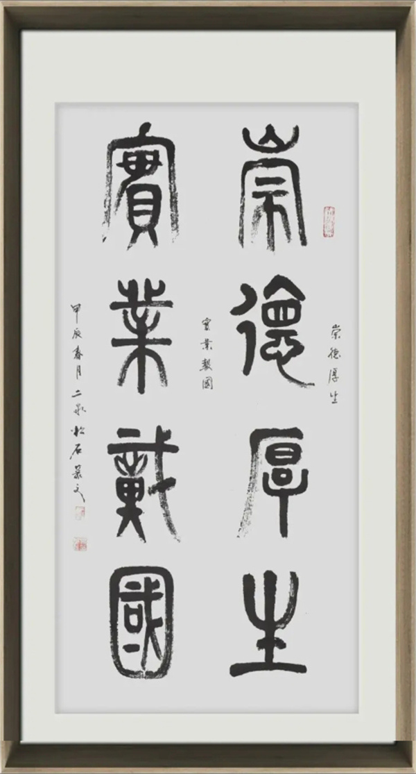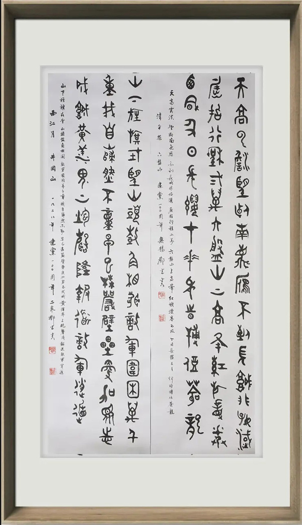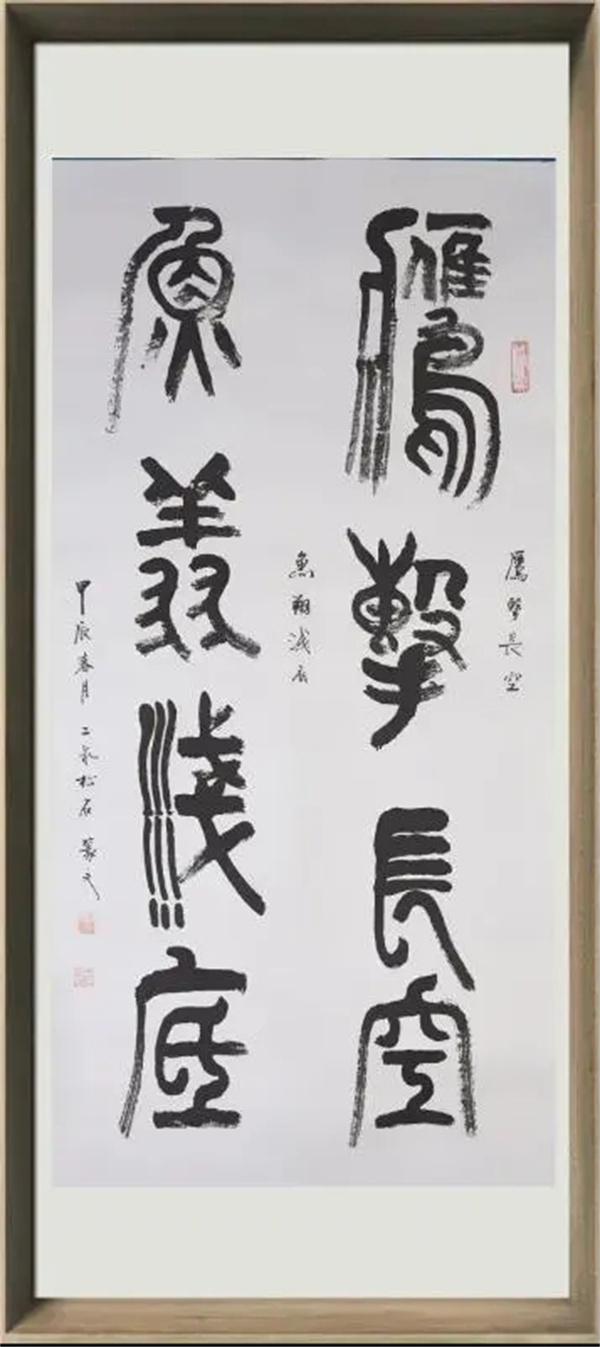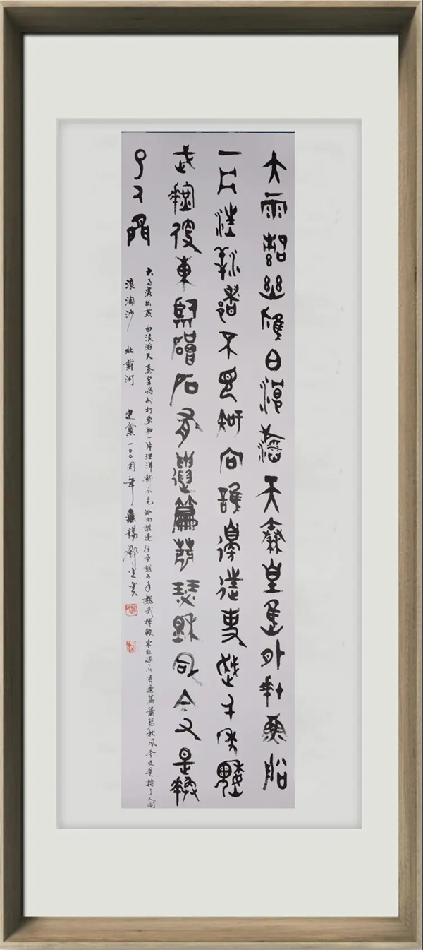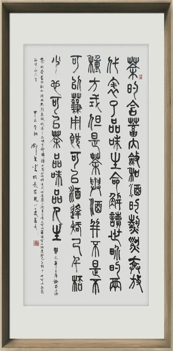 邓光炎自幼酷爱书法,博涉多体,其中最为出彩的是篆书。他研习历代篆书名家书风,形成了自己独特的艺术风格,充满了典雅与高古气息,章法疏阔均衡,整体气势魄力雄强,自由书写中不失规矩,严谨中不失天趣,古老的文字焕发出艺术的青春。积极参加惠山区、长安街道的一些书画活动,并在各类书画大赛中多次获奖。去年,他撰写的24幅篆书作品,在由北京华夏国艺书画艺术中心主办的“传世国艺 韵动华夏”艺术名家成就展中展出,在书画艺术界产生了很大的影响力。