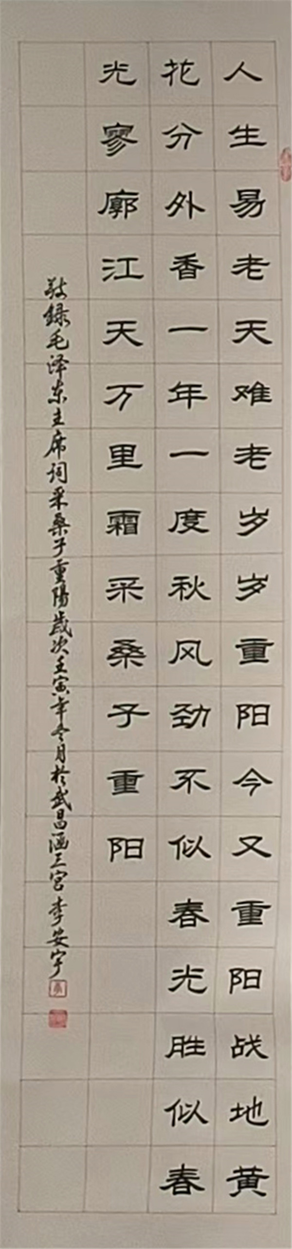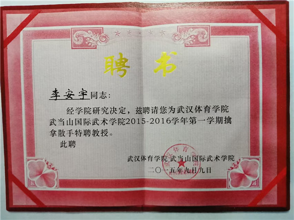 李安宇,1945年生,江苏省宜兴市官林镇三司桥人氏,大学学历、经济师、工程师、翻译协会会员、高级工艺美术师,擅长书法绘画,且精于擒拿散手,退休前系武汉天工特种机械股份有限公司总工程师办公室主任,曾为中国机械工业部机床行业、附件行业筹办“中国国际机床博览会”、“中国机床工具博览会”等全国大型专业展览,为湖北省社会科学院筹办书画展,其中多幅作品参加“首届鄂台名家书画艺术展”,成功举办了“著名武术家李安宇老师擒拿技法推介暨个人书画作品展”、“纪念伟大领袖毛泽东诞辰120周年个人书画巡回展”,获得了2014年第七届重阳书画大赛银奖,部分作品被中国邮政采纳出版邮票、电信卡和明信片,现任“中国国学书画协会”理事、武汉戈甲营书画协会会长“安宇擒拿散手研究会馆”馆长、武汉体育学院武当山国际武术学院特聘教授。