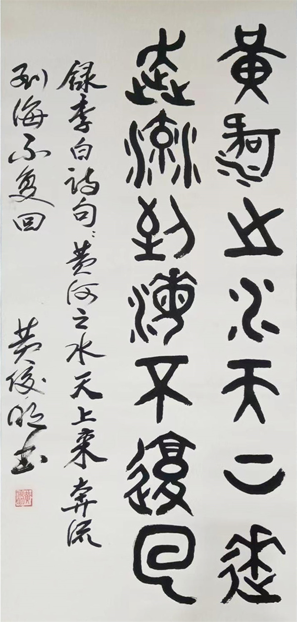 黄俊明,自幼喜爱书法。学书以欧体楷书为主,兼学行书草书,隶书,篆书。书法作品在多家报刊发表。多幅书法作品获得省级以上奖励。己出版《黄俊明诗书画精品集》《黄俊明书画作品集》。系江西省书法家协会会员,江西省作家协会会员,中国散文学会会员。