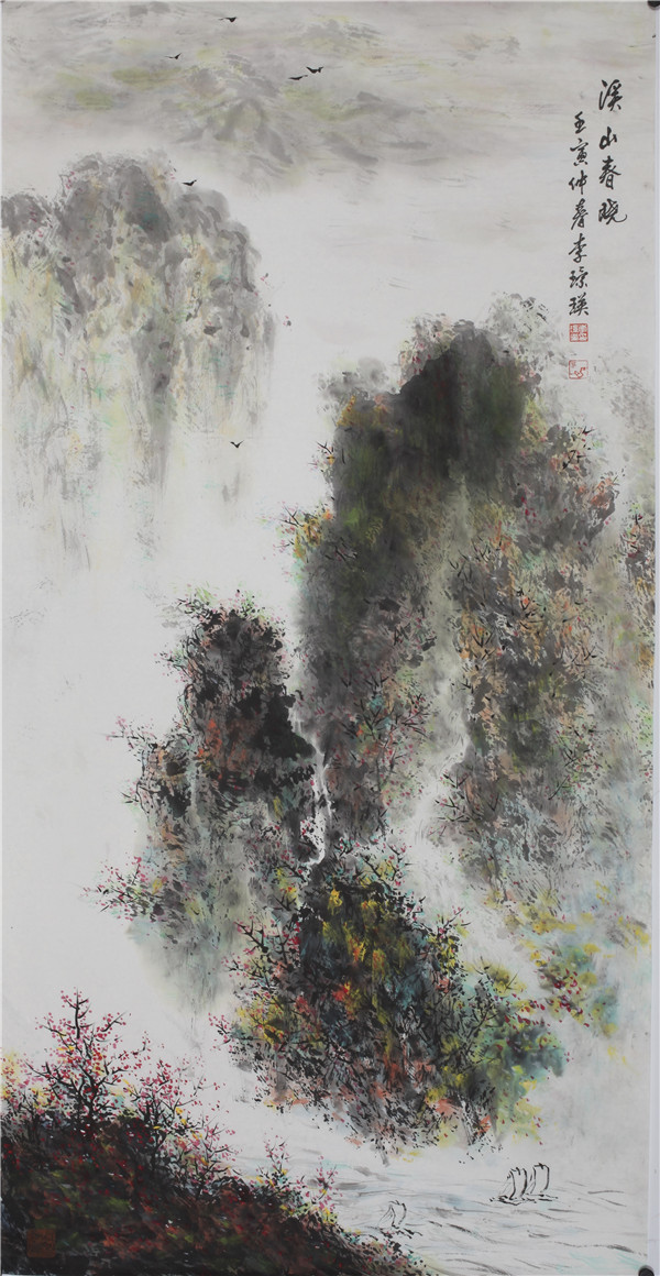 李璟瑛的中国画创作,于山水烟岚、花鸟意态间深植传统画理,又以鲜明的个人语汇拓展着笔墨的当代可能。其作品可于谢赫 “六法”、郭熙 “三远”、石涛 “笔墨当随时代” 等古代画论中寻得渊源,更在传统与当代的碰撞中,演绎出气韵生动、意趣盎然的艺术风貌。