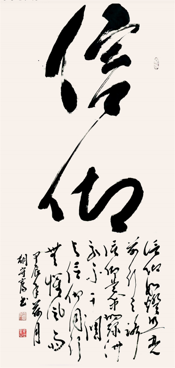 胡守富,浙江省磐安县新渥街道人。现任中国书画家协会会员,中国老年书画家学会理事,环球翰墨文化艺术研究员,北京环球翰墨文化艺术院书法院副院长,一级书画师等职。2021年10月15日聘为“瀚青国韵文化艺术中心”名誉副会长。其人书法功底深厚,创作奔放自由,法度严谨,笔法厚重而不失飘逸,灵动而不失庄严;。注重吸收历代各家各派之所长,无论是作品的题材,构想.章法.意境等诸方面,均能多方面接纳为我所用。